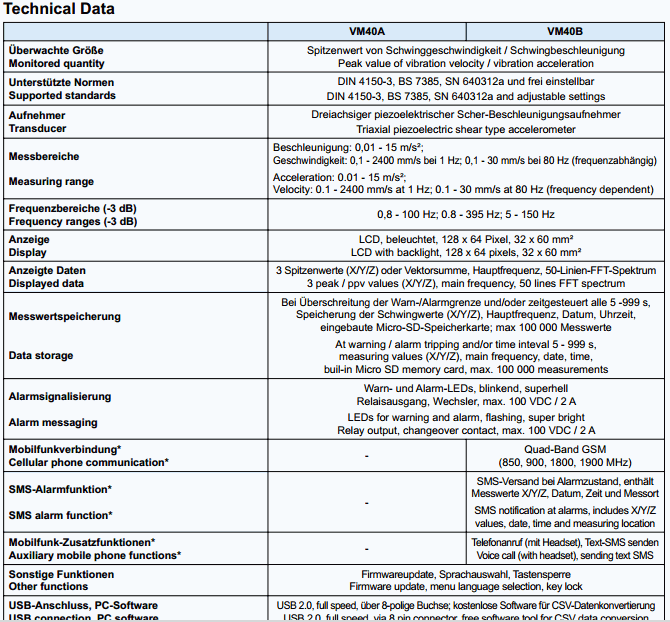 • Measures building vibration to DIN 4150-3, BS 7385 and SN 640312a