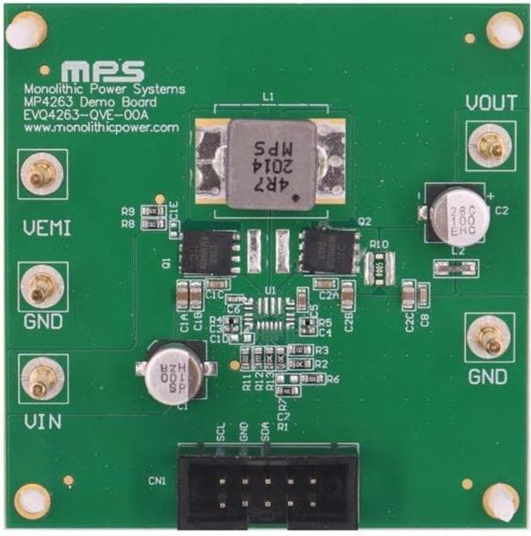 Monolithic Power Systems (MPS) EVQ4263-QVE-00A Switching Controller MPQ4263-AEC1 Evaluation Board.36V, 140W Buck-Boost with Integrated Low-Side MOSFETs, Supports High-Side Current Sense and I2C, AEC-Q100 Qualified