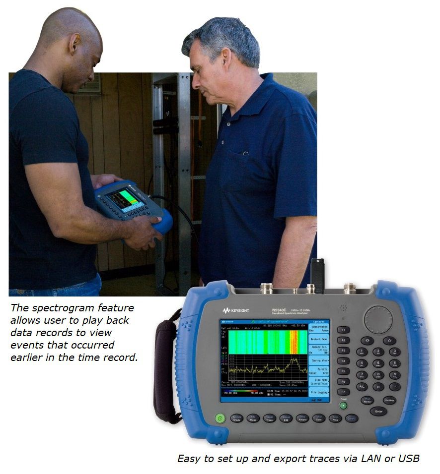 Optional spectrogram display, record, and playback features create a powerful analysis tool for understanding spectrum
