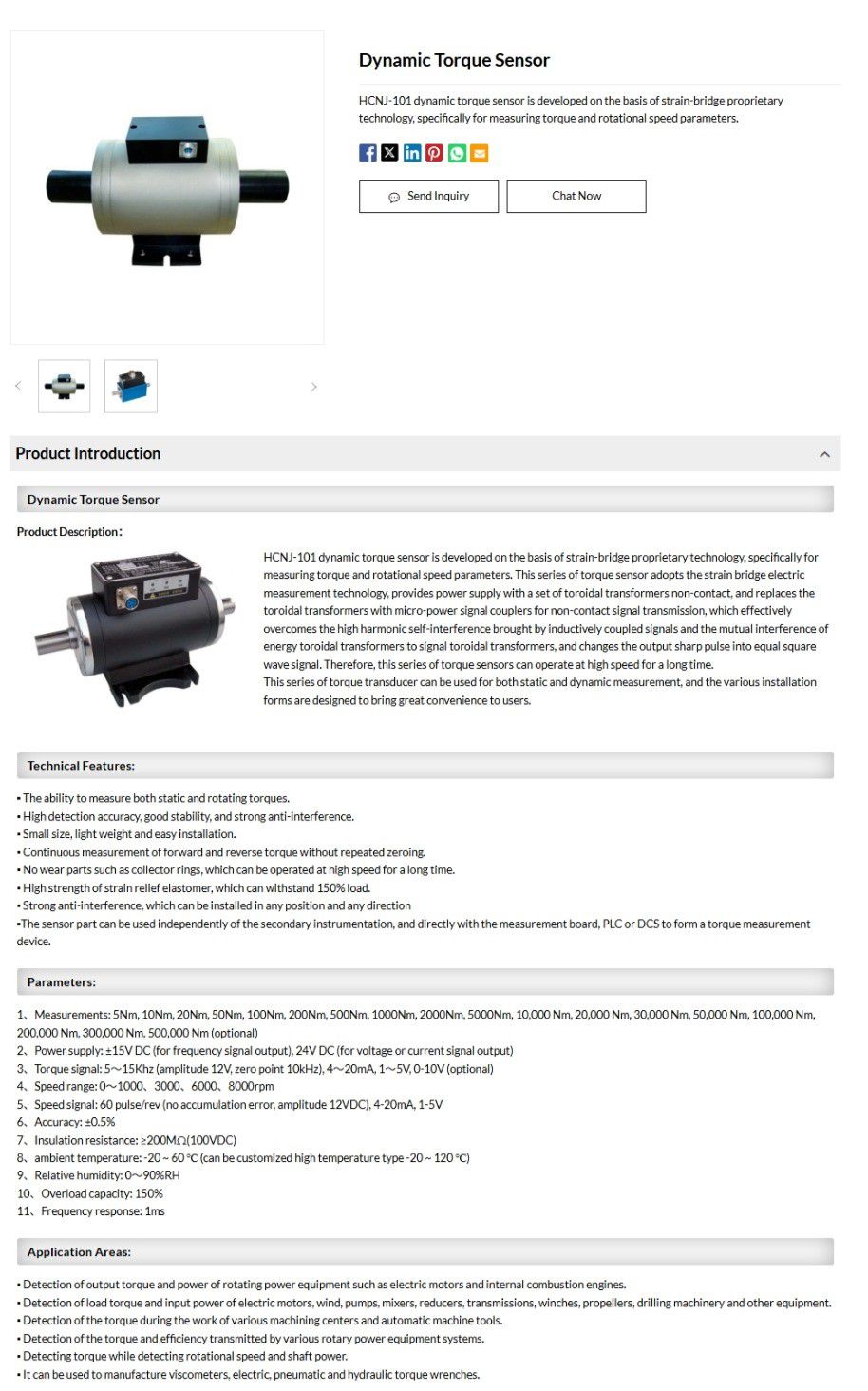 Torque signal: 5~15Khz (amplitude 12V, zero point 10kHz), 4~20mA, 1~5V, 0-10V (optional)