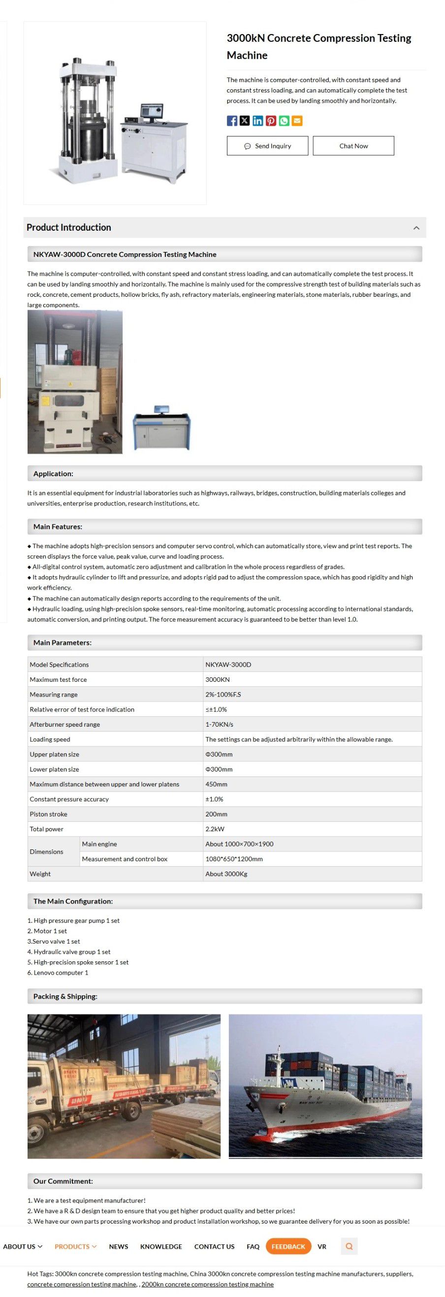 NAKE NKYAW-3000D ເຄື່ອງທົດສອບການອັດຕິດຄອງກັນຂອງຄອງກົດ (3000KN) | EMIN.COM.LA