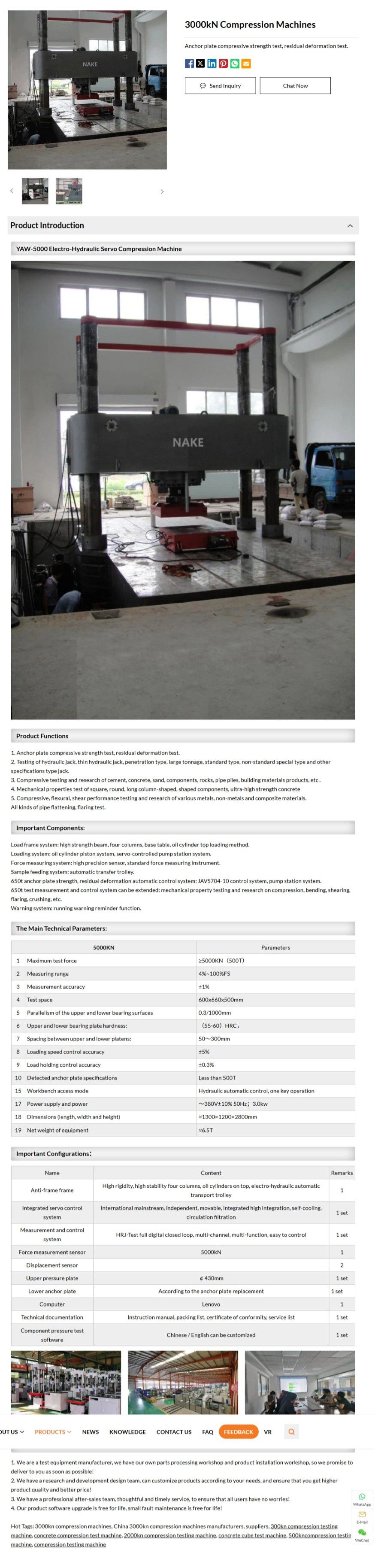 Maximum test force: ≥5000KN(500T)