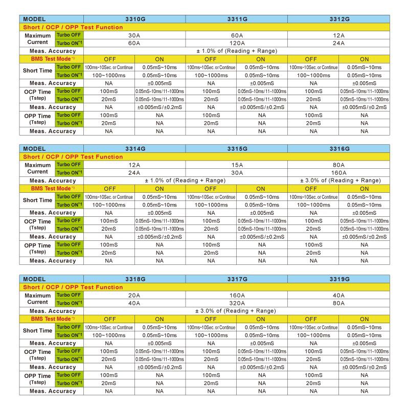 Previous Prodigit 3310F Series electronic loads were developed with BMS test functions back in 2015 as an option on the 3302F mainframe. The 3310G Series electronic now includes standard BMS test functions. Furthermore, the new Turbo mode allows the short circuit protection current and overcurrent protection to be 2 times larger depending on the 3310G model.