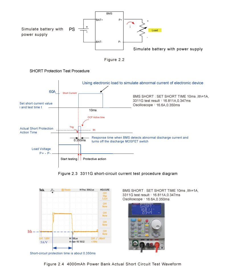 2.4 Overcurrent discharge protection (OCDP) test method: Power supply (PS) & LOAD connection and test procedures are shown in Figure 2.10.