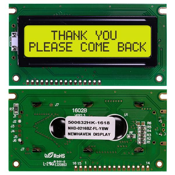 Newhaven Display NHD-0216BZ-FL-YBW ໂມດູນຈະຫນໍາສະແດງຕົວອັກສອນ LCD STN- Y/G Transfl 84.0 x 44.0 | EMIN.COM.LA