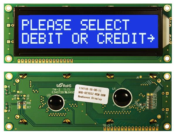 Newhaven Display NHD-0216SZ-NSW-BBW ໂມດູນຈະຫລັກສະຕິກເລັກທຣອນ LCD STN- ສີຟ້າ Transm 122.0 x 44.0 | EMIN.COM.LA