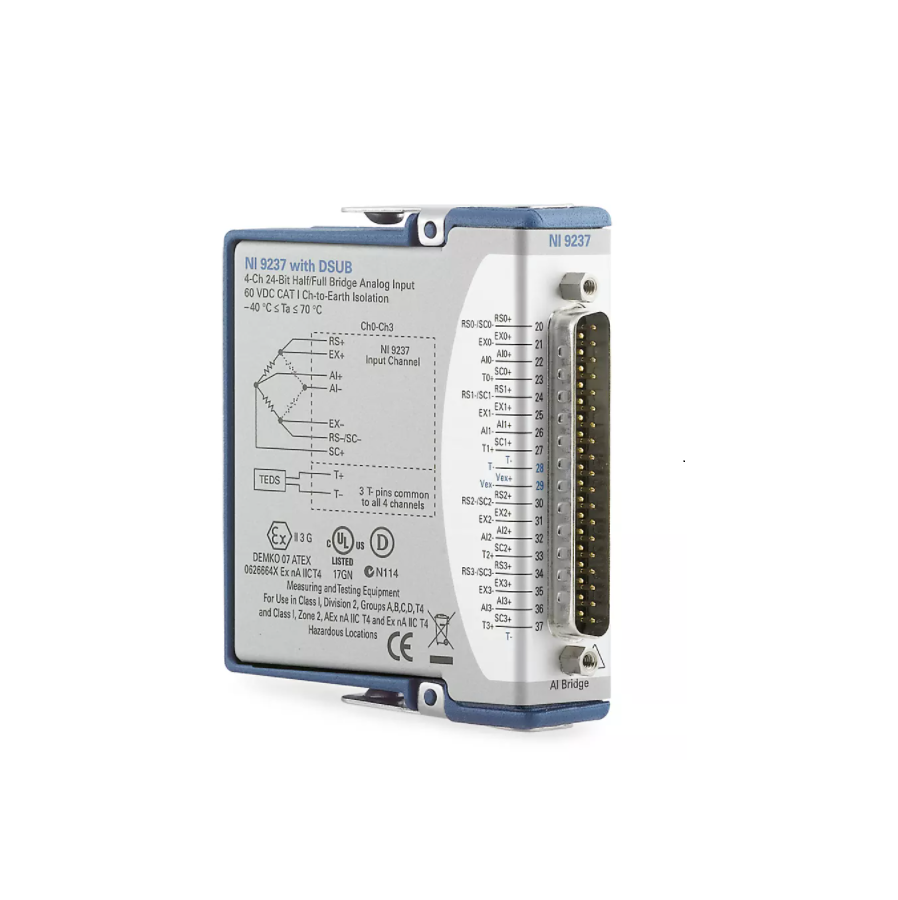 The C Series Strain/Bridge Input Module works with higher-channel-count, dynamic strain measurement systems. Modules can acquire measurements from up to eight channels, with compatibility options for quarter-, half-, and full-bridge sensors. The C Series Strain/Bridge Input Module is ideal for application channels requiring measurements at particular times, such as impact tests. It includes built-in voltage excitation, as well as transient isolation for high-common-mode noise rejection and improved safety.The C Series Strain/Bridge Input Module includes the NI-DAQmx driver and configuration utility that simplify configuration and measurements. NI-DAQmx supports NI programming environments as well as Python, ANSI C, C#.NET, and MathWorks MATLAB® software.