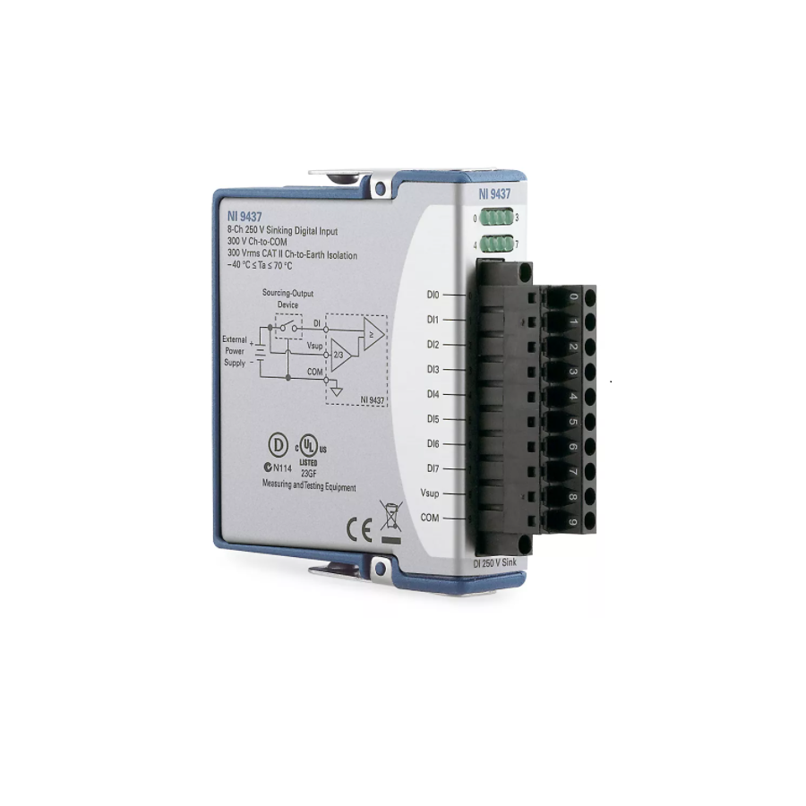 The C Series Digital Module interacts with a range of industrial switches, transducers, and devices. Some modules include an LED per channel that indicates the state of the channel. It supports input, output, or a combination of digital lines, and they can interact with a variety of voltages and logic levels, so they are well-suited for a variety of benchtop and industrial environments. Additionally, the C Series Digital Module also offers isolation options and sinking or sourcing capabilities to add further protection to your digital I/O application. When you use the C Series Digital Module with CompactRIO, you can use LabVIEW FPGA to create custom high-speed counter/timers, digital communication protocols, pulse generation, and more.The C Series Digital Module includes the NI-DAQmx driver and configuration utility that simplify configuration and measurements. NI-DAQmx supports NI programming environments as well as Python, ANSI C, C#.NET, and MathWorks MATLAB® software.