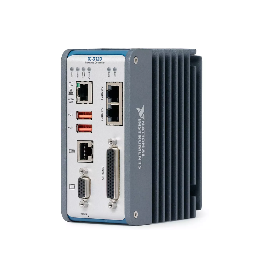 Industrial Controllers are high-performance, fanless controllers that provide connectivity for communication and synchronization to EtherCAT and Ethernet CompactRIO chassis, EtherCAT motion drives, GigE Vision and USB3 Vision cameras, and other automation equipment. Controllers also have onboard isolated, transistor‐transistor logic (TTL), and differential digital I/O. You can use LabVIEW system design software to create, debug, and deploy logic to both the onboard FPGA and the processor. LabVIEW contains over 950 signal processing, analysis, control, and mathematics functions to accelerate development.