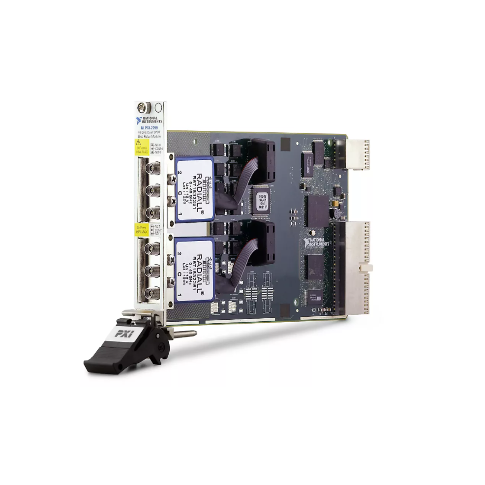 PXI RF Relay Modules offer single-pole double-throw (SPDT) and terminated switches. SPDT models include excellent insertion loss, voltage standing-wave ratio (VSWR), and isolation parameters to minimize signal degradation. You can use the onboard relay-count-tracking feature on these models to predict relay lifetime and reduce unexpected system downtime. SPDT models are also well-suited for passing high-order harmonics from PXI RF Signal Upconverter Modules or routing multiple sources to PXI RF Signal Downconverter Modules. Terminated switch models feature front-mounted SMA connectors and high-performance solid-state relays for fast switching time and unlimited mechanical lifetime. These models also include termination on every COM line and channel, which helps minimize reflections of the RF signal and protect your instruments.