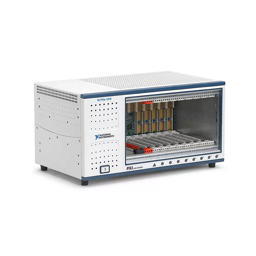 PXI Chassis are compatible with PXI, PXI Express, and PXI hybrid modules and meet the cooling requirements of the most power-demanding PXI modules. You can also choose chassis options that minimize the overall system acoustic emissions. Chassis can provide up to 18 slots, with a mixture of both PXI and PXI Express module compatibility, and you can choose between AC and DC power options.