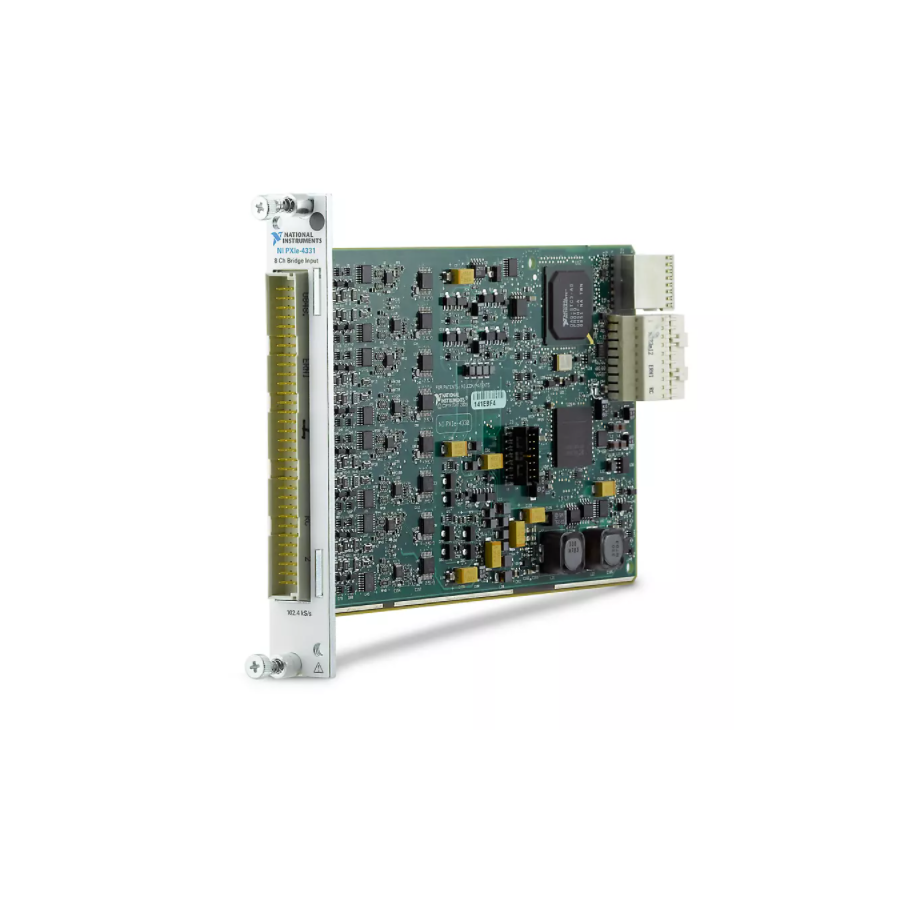 The PXI Strain/Bridge Input Module features up to eight channels that support quarter-, half-, or full-bridge sensors at speeds up to 102.4 kS/s. This module provide increased accuracy, high data throughput, and a range of synchronization features. The module is ideal for dynamic strain, load and pressure measurements, and test cell installations requiring accuracy and flexibility. Some models include optional features such as remote sensing, internal bridge completion, and shunt calibration options per channel.The PXI Strain/Bridge Input Module includes the NI-DAQmx driver and configuration utility that simplify configuration and measurements. NI-DAQmx supports NI programming environments as well as Python, ANSI C, C#.NET, and MathWorks MATLAB® software.