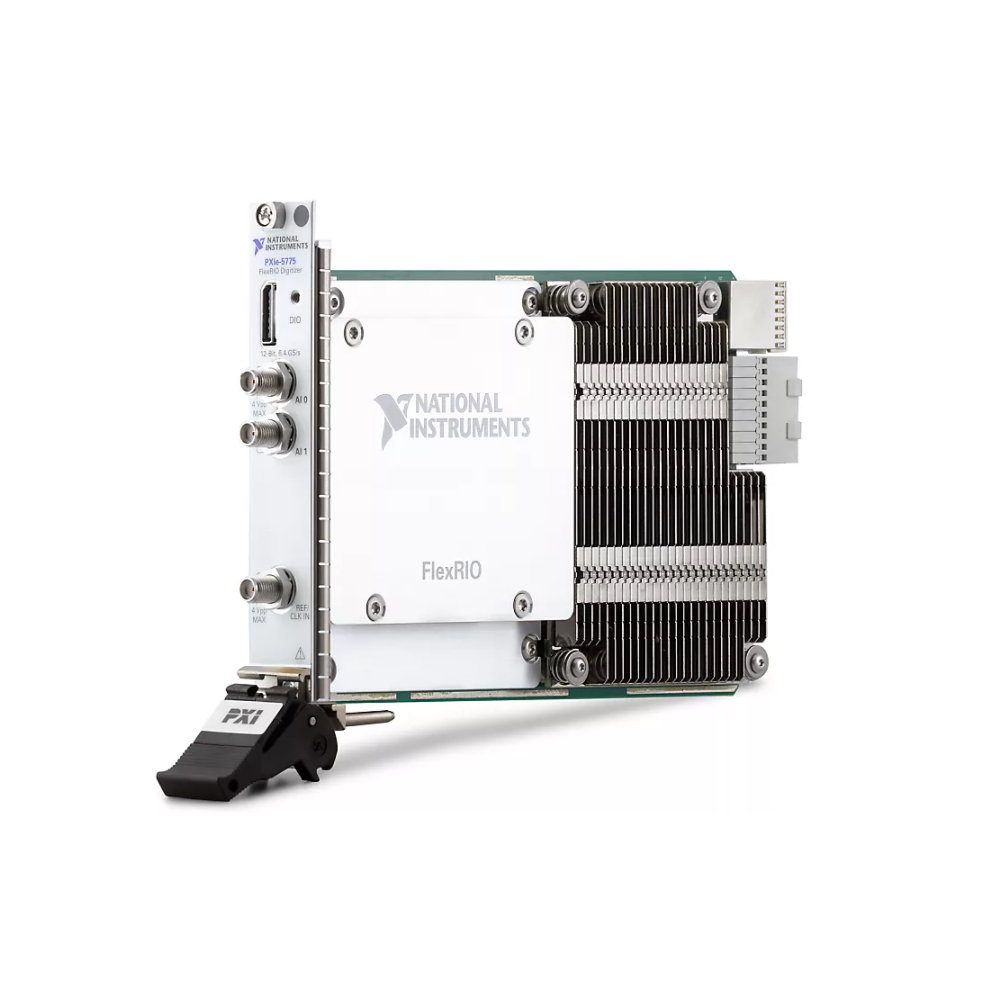PXI FlexRIO Digitizers feature high-performance analog-to-digital converters with lightweight analog front-ends designed to maximize sample rate, bandwidth, and dynamic range. These modules use FPGAs from Xilinx alongside LabVIEW and Vivado programming options for custom algorithm implementation and real-time signal processing. For applications that require high channel counts, PXI FlexRIO Digitizers use the NI-TClk API and the timing and synchronization capabilities of PXI to achieve sub-sample synchronization between multiple modules in a chassis. These modules also feature an auxiliary I/O connector with GPIO for triggering or digital interfacing and the option for high-speed serial communication.