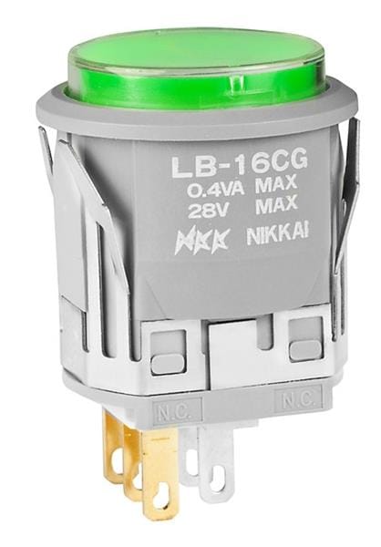 NKK Switches LB16CGG01-5F-JF ປຸ່ມກົດສະແກນ ON-ON RND ຕົວເຄື່ອງສີເທົາ ໄຟ LED ສີຂຽວ ຝາ CLR/GRN | EMIN.COM.LA