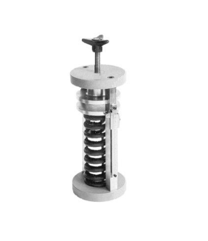 Tightening knob operates the upper movable platen by means of a thrust ball bearing, for insuring an accurate application of load on the specimen