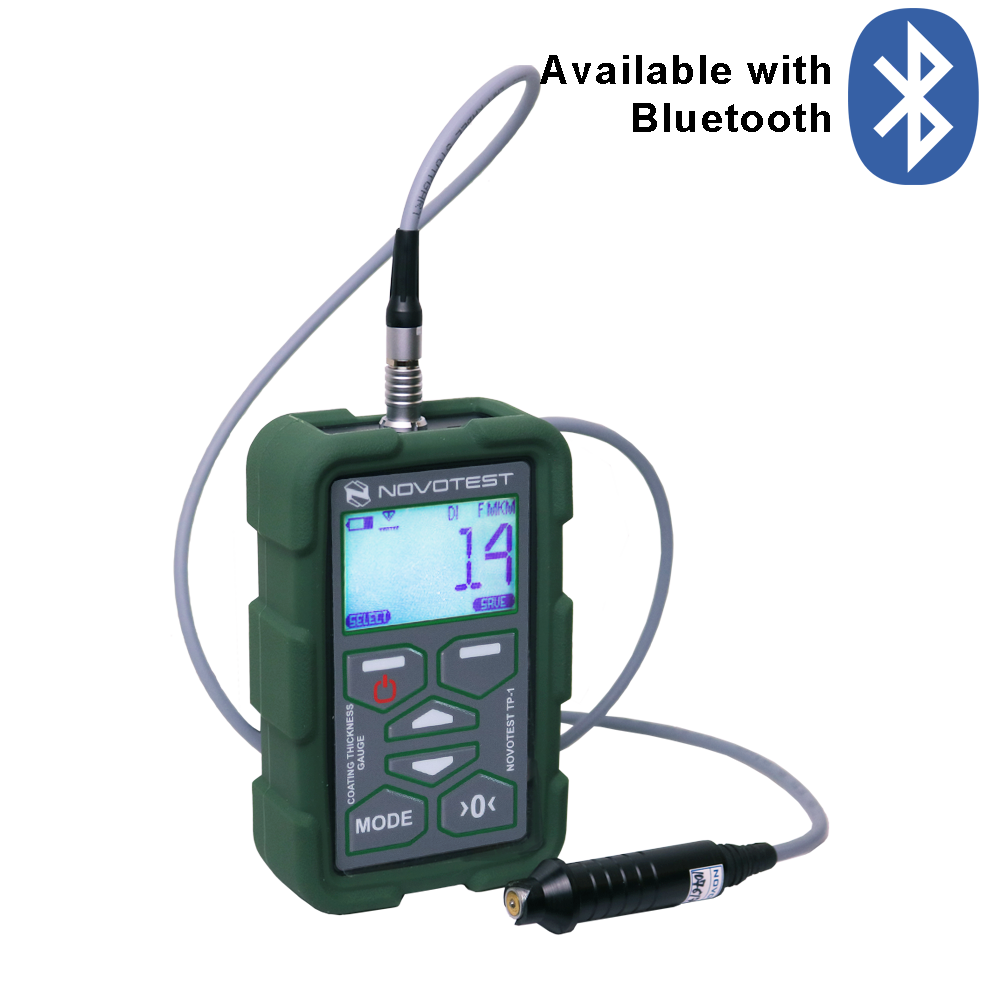 Coating thickness gauge NOVOTEST TP-2020 is designed for thickness measuring of coatings based on ferrous and non-ferrous metals. Variety of various sensors make it possible of non-destructive testing of protective coatings with a wide thicknesses range. Thickness gauge can also measure next parameters: the depth of grooves and corrosion, surface roughness as well as temperature control, ambient humidity and dewpoint temperature, therefore covering a wide range of tasks by one universal unit (thickness gauge).