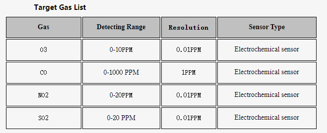 Resolution: Depended on the gas types