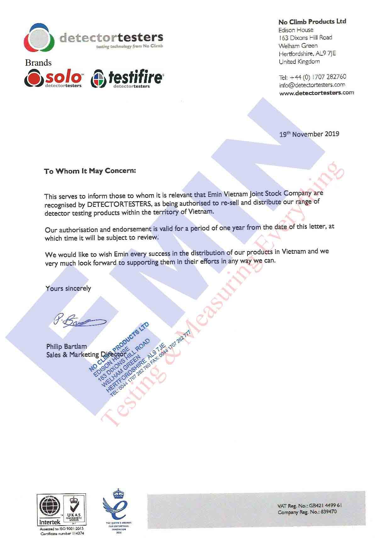 Since November, 2019 EMIN has become official distributor of DETECTORTESTERS in Vietnam