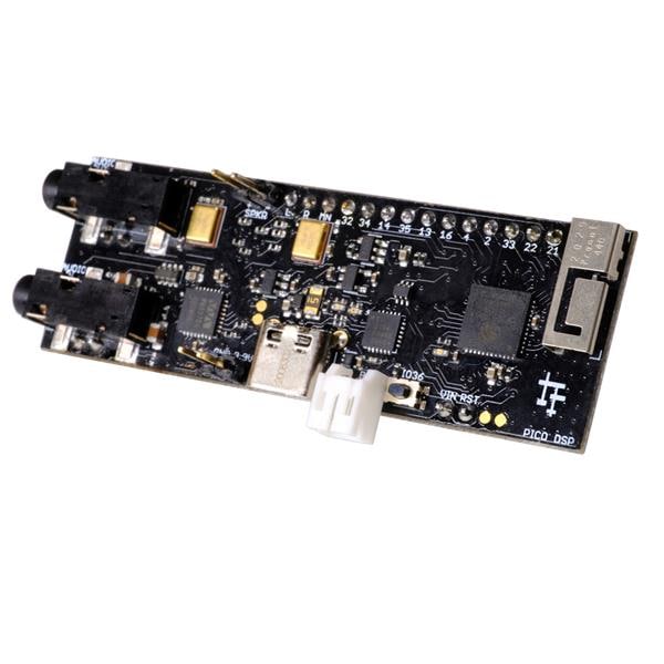 Ohmic Limited R100 Audio DSP ແຜງພັດທະນາ ESP32 ທີ່ສາມາດເຂົ້າກັນກັບ Arduino ແບບເປີດແຫຼ່ງ ສໍາລັບການປະມວນຜົນສັນຍາລັກດິຈິຕອນ (DSP) ແລະສຽງ - ມີຄວາມຈຳ 16 MB ຂອງແຟລັດພາຍນອກ. ມີການຈັດສົ່ງມາດ້ວຍຫົວກັບຊີ້ນຊາຍທີ່ບໍ່ໄດ້ບອດ, ການເຊື່ອມຕໍ່ແບດເຕີຣີ JST, ແລະແອັບພລິເຄຊັນເທສທົດສອບ firmware
