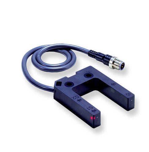OMRON E3Z-G62 ເຊັນເຊີ Photoelectric ປະເພດ Grooved ມີເຄື່ອງຂະຫຍາຍສຽງໃນຕົວ (Twin through-beam, 25 mm, NPN, M8 pigtail 4 pin) | EMIN.COM.LA