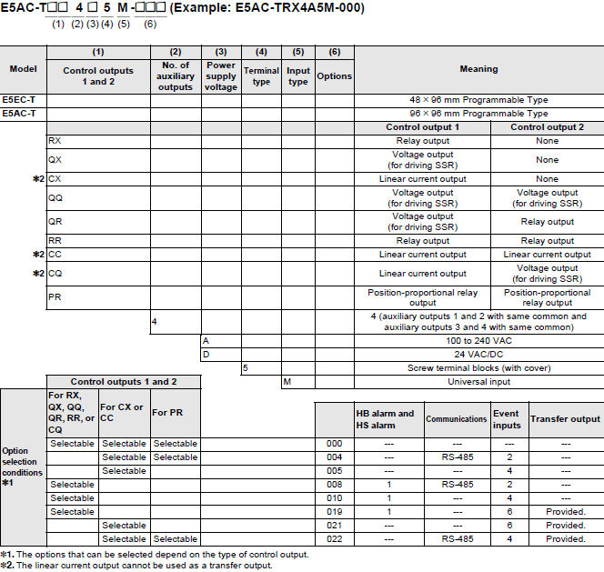 OMRON E5AC-TCC4A5M-022 ຕົວຄວບຄຸມອຸນຫະພູມດິຈິຕອນ (100 ~ 240 VAC; 96x96mm) | EMIN.COM.LA