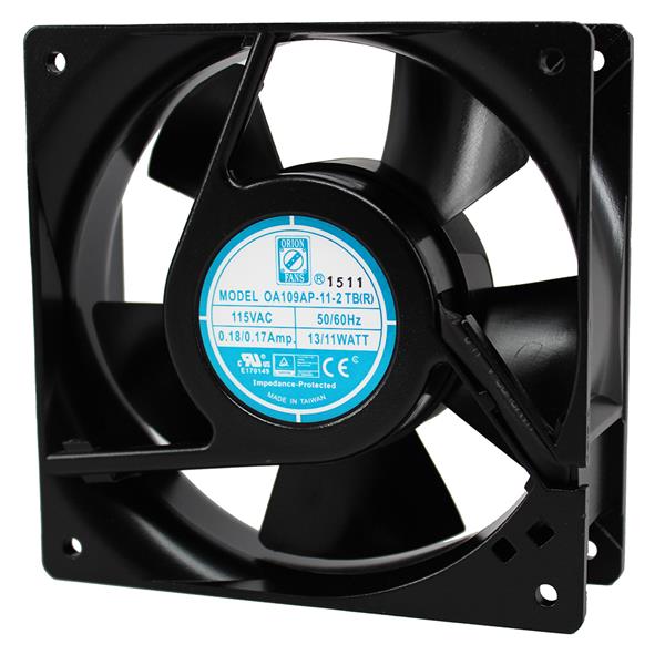 Orion Fans OA109AP-11-2TBR ພັນ AC ພັນແອັກຊຽວ, 120x120x38mm, 115VAC, 85CFM, 13W, 45dBA, 2750RPM, ລົດລົງ, ເຕີມິນານ | EMIN.COM.LA