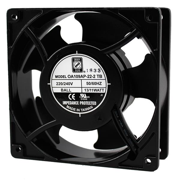 Orion Fans OA109AP-22-2TB ພັງລົມ AC ພັງລົມ Axial, 120x120x38mm, 230VAC, 70CFM, 11W, 35dBA, 2300RPM, Ball, Terminals | EMIN.COM.LA