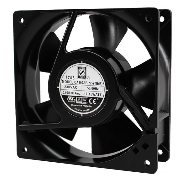 Orion Fans OA109AP-22-2TBR ພັງລົມ AC Axial Fan, 120x120x38mm, 230VAC, 85CFM, 13W, 45dBA, 2750RPM, Ball, Terminals | EMIN.COM.LA