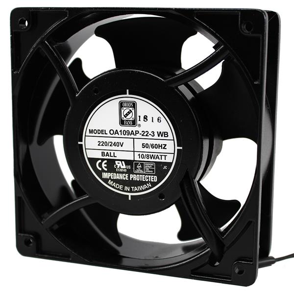 Orion Fans OA109AP-22-3WB ພັງລົມ AC ພັງລົມ Axial, 120x120x38mm, 230VAC, 52CFM, 8W, 25dBA, 1600RPM, Ball, Lead Wires | EMIN.COM.LA