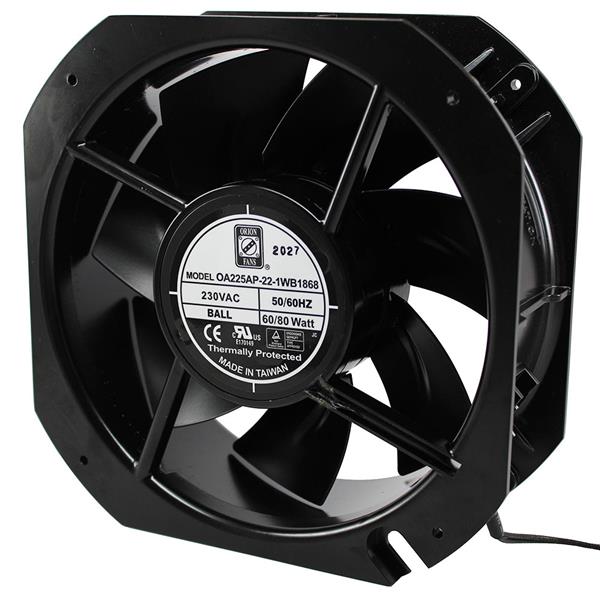 Orion Fans OA225AP-22-1WB1868 ພັງລົມ Axial Axial, 225x225x80mm, 230VAC, 620CFM, 80W, 66.2dBA, 3100RPM, Ball, Wire, IP68 | EMIN.COM.LA
