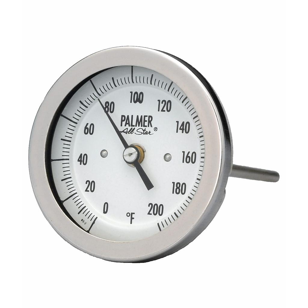 Bimetal Size and Case Style: 3" Fixed Center Back Connected, Adjustable Union All Star Bimetal Thermometer