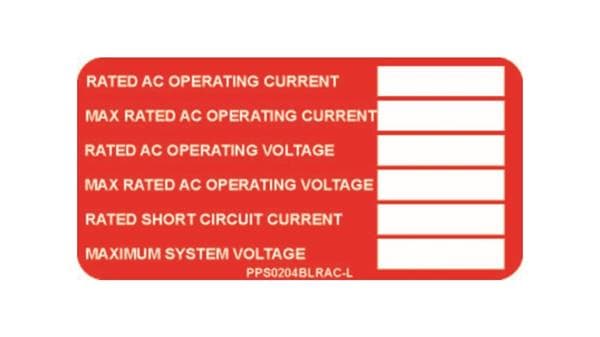 Panduit PPS0204BLRAC-L ປ້າຍສະແດງກຳລັງການໃຊ້ງານ AC ທີ່ຖືກຈົດ, 2.00" ສູງ x 4.00" ກວ້າງ, 'Rated A | EMIN.COM.LA