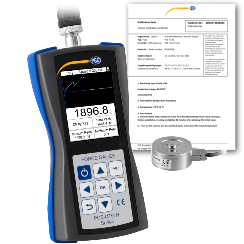 Measuring range: 0 ... 2 kN / 2,000 N / 204 kg / 450 lbs