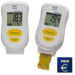 The PCE-MT 50 mini-thermometer is a compact and water resistant device to be used with diverse type K sensors. The PCE-MT 50 mini-thermometer can be used in many different fields such as: HVAC measurements (Heating Ventilation Air Conditioning), air conditioning, heating and process measurements. The PCE-MT 50 mini-thermometer comes with IP65 protection, so it can be used to perform measurement in environments with humidity. The PCE-MT 50 mini-thermometer is equipped with a sensor which can change depending on the measurement is being carried out. All type K sensors can be adapted to this PCE-MT 50 mini-thermometer through a standard plug. The usual tools are a surface sensor for heating or a penetrating probe for ventilation systems. This PCE-MT 50 mini-thermometer is used in point process controls. This mini-thermometer has a temperature range from -60 to 1370 ºC. |