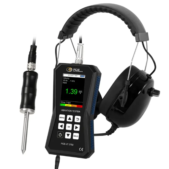 The accelerometer is ideal for maintenance workers to quickly check vibrating parts, machines and systems. This vibration meter shows the vibration acceleration, vibration velocity and vibration displacement directly on the display. You can use the device to quickly and reliably detect machine imbalances which can lead to, for example, bearing damage. The vibration meter is equipped with a mode that allows a measurement according to ISO 10816-3 to be carried out. The vibration meter analyzes the measured values and automatically shows a good / bad evaluation on the display.