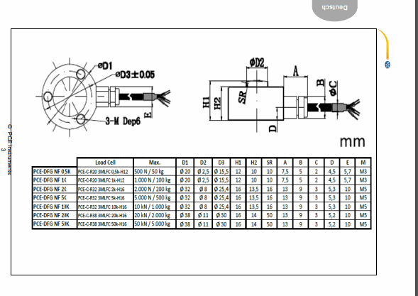 PCE DFG NF 50K load cell ໂຫຼດຕາລາງສໍາລັບຊຸດ DFG NF | EMIN.COM.LA