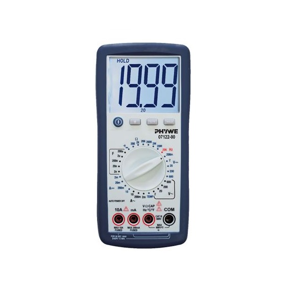 Hand-held instrument for measurement of voltages, currents, resistances,capacitance, frequency and temperature.