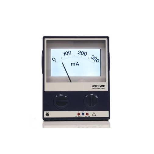 - The universal demonstration measurement device for measurements of current and voltage. Battery powered electronic analogue measuring instrument with measuring amplifier and 8 selectable scales for 33 measuring ranges. All values can be displayed as digital value.