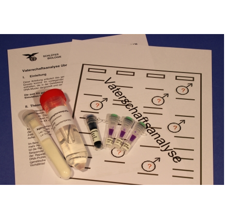 This set allows to study the genetic method of paternity analysis, as it is used today. Among others this set contains various DNA samples, which are seperated according to their size by using electrophoresis. So you can prepare an individual DNA sample in order to compare and analyze kinship between different humans.