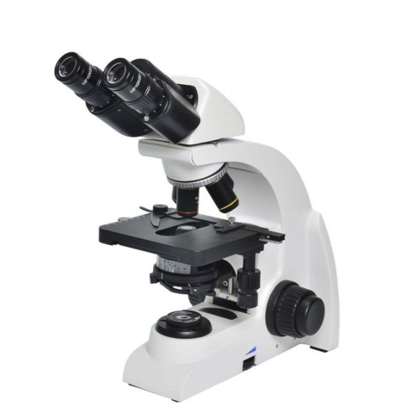 Binocular microscope with 1000x magnification, infinity optics and rechargeable battery