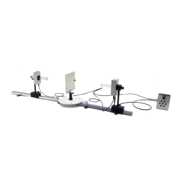 Convenient all-in-one set includes control unit, transmitter and receiver as horn antennae, microwave probe, microwave benches, grating, slit plates, prism, and reflection/absorption plates