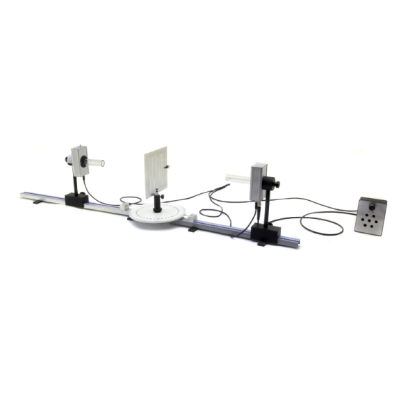 With the same set, all aspects of microwave physics can be studied quantitatively: polariziation, reflection, transmission, refraction, propagation, diffraction, interference, inverse square law, standing waves, conservation of energy in reflection and transmission