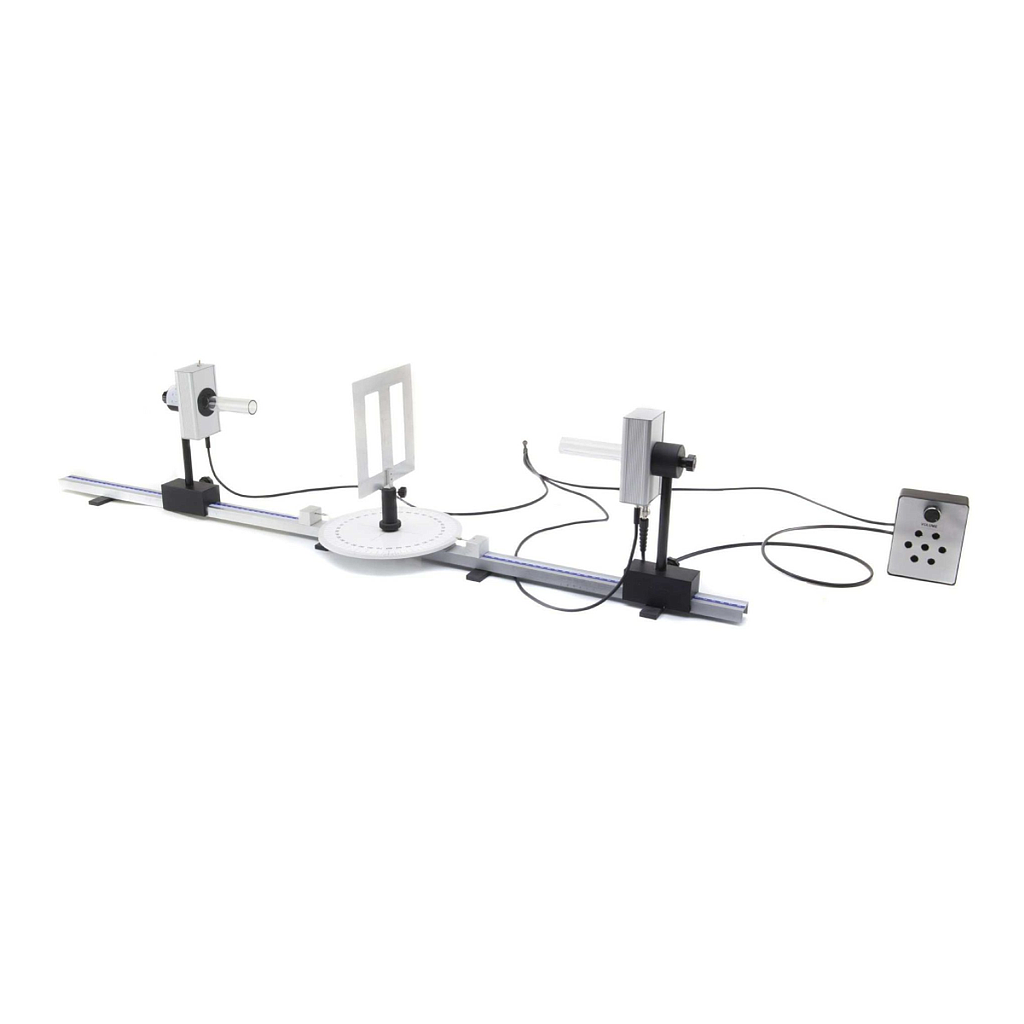 Convenient all-in-one set includes control unit, transmitter and receiver as horn antennae, microwave probe, microwave benches, grating, slit plates, prism, and reflection/absorption plates