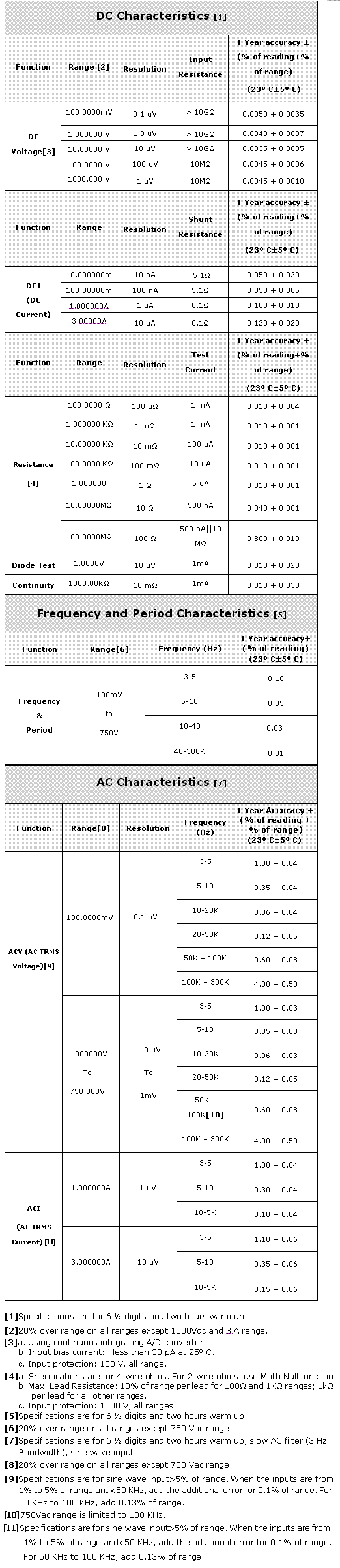 DCA: 10mA, 100mA, 1A, 3A