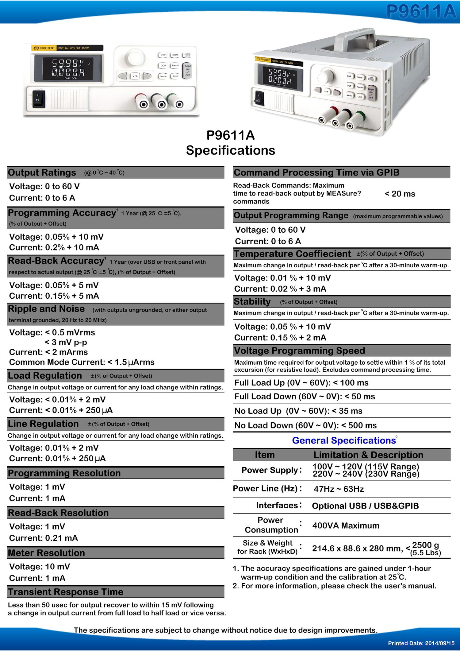Power Supply: 100V-120V (115V Range) 220V-240V (230V Range)