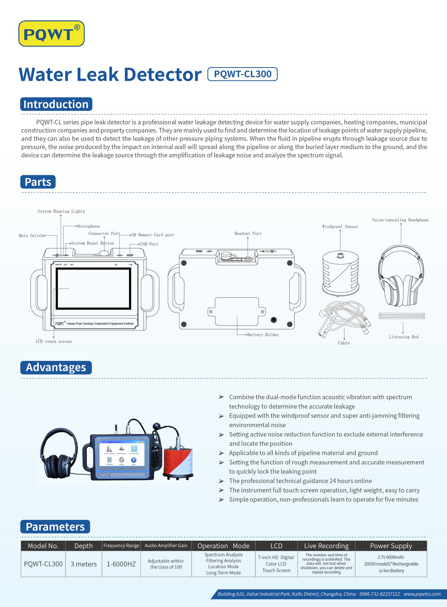 PQWT PQWT-CL300 ເຄື່ອງກວດຈັບນ້ຳຮົ່ວ (3m; 1~6000Hz) | EMIN.COM.LA