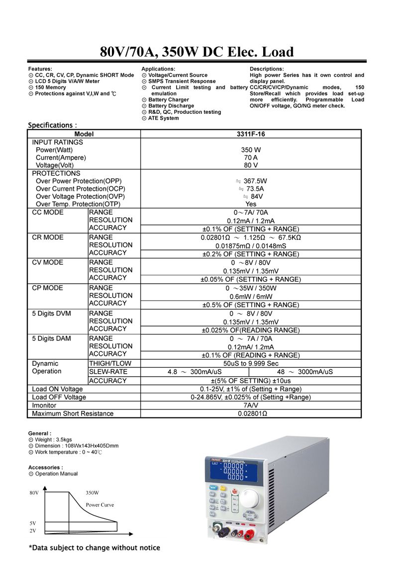 PRODIGIT 3311F-16 DC Electronic Load (80V, 70A, 350W) | EMIN.COM.LA