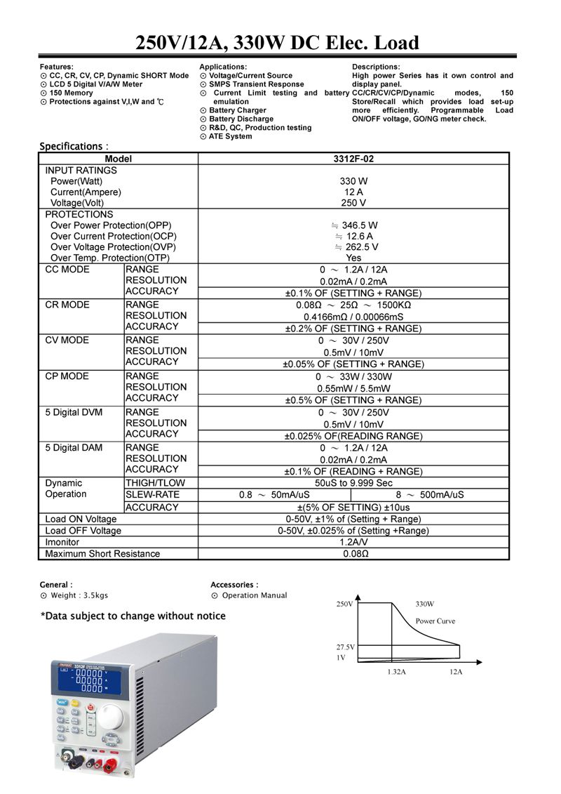 PRODIGIT 3312F-02 DC Electronic Load (250V, 12A, 330W) | EMIN.COM.LA