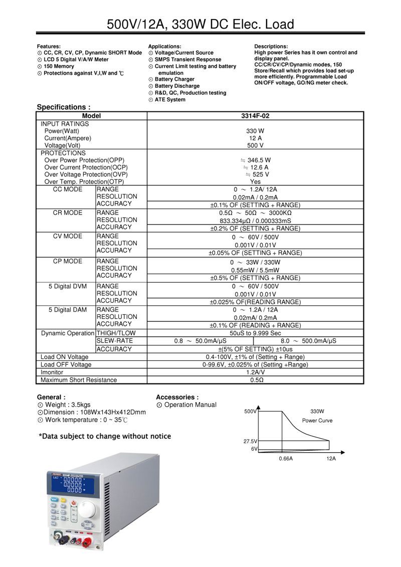 PRODIGIT 3314F-02 DC Electronic Load (500V, 12A, 330W) | EMIN.COM.LA