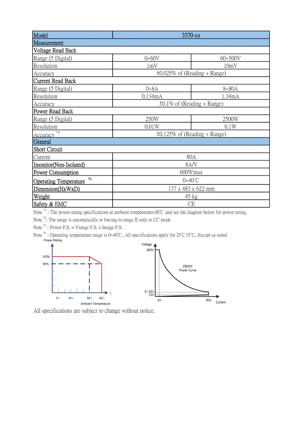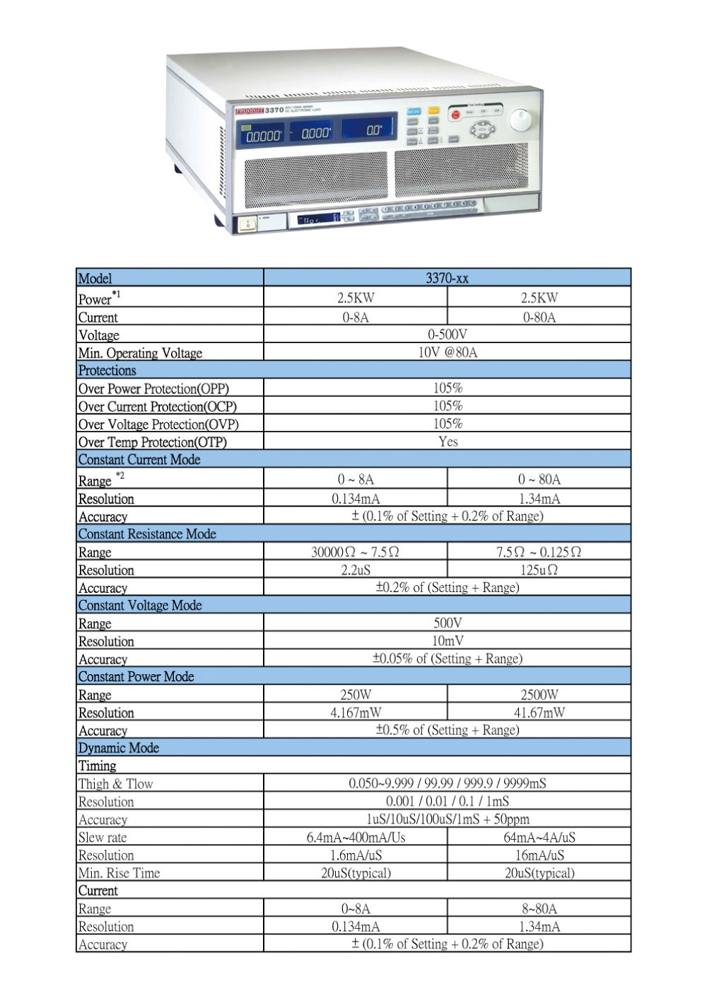 Power : 0 ~ 250W/2500W, ±0.125%
